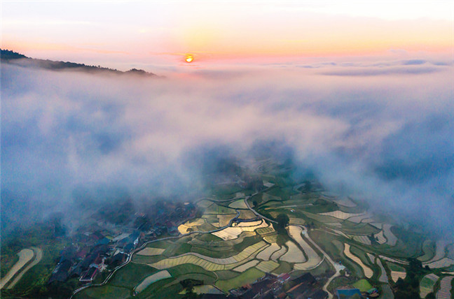 湖南怀化:布村梯田夏日美景 云雾缭绕宛如仙境