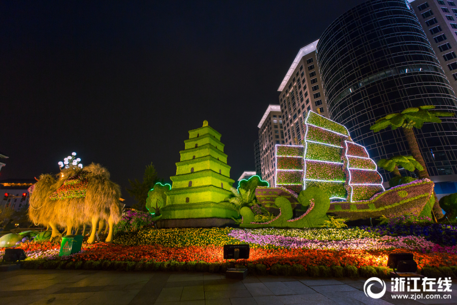 白天花团锦簇,夜晚熠熠生辉!10月21日,北京夜色璀璨,天安门广场上,喜迎十九大的巨型花坛美轮美奂。十里长街上,沿途的灯杆挂上大红灯笼、中国结,路口的主题花坛在灯光的点缀下成为街头的一道靓丽风景。(浙江在线记者倪雁强 王夷 摄)
