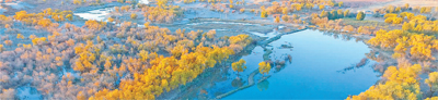 金秋时节,内蒙古自治区额济纳旗胡杨林在阳光中迸发出金色的魅力。新华社发