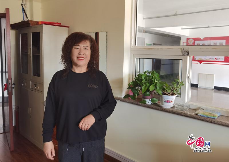 图为杨春华介绍养老院的情况。(中国网 陶丽娇 摄)