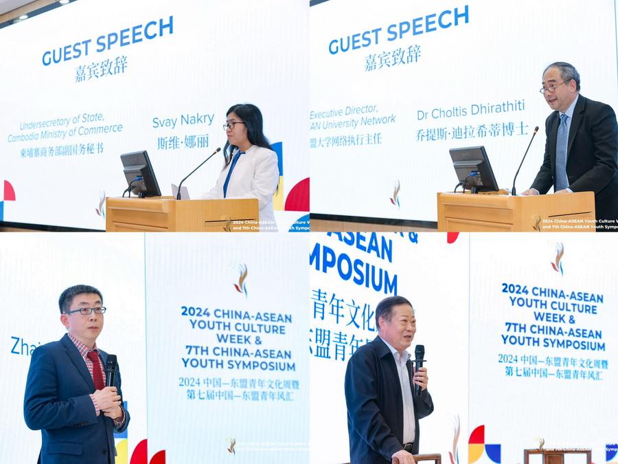 柬埔寨商务部副国务秘书斯维·娜丽、东盟大学网络执行主任乔提斯·迪拉希蒂博士、擘雅集团董事长刘瑞旗、北京大学区域与国别研究院副院长、国际关系学院教授翟崑分别在仪式上发表致辞。他们共同认为,年轻一代将会是中国—东盟合作的主要推动者,文化周有力地促进了中国—东盟人文交流。此外,他们还希望青年代表们充分利用这个宝贵的机会加强沟通与合作,为中国—东盟关系注入活力。