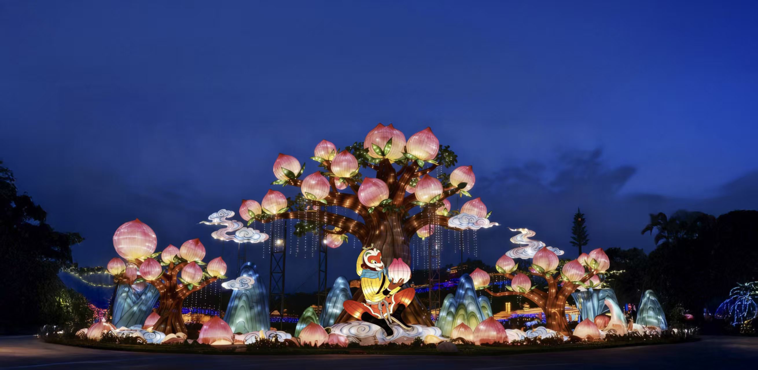 据了解,本次天宫灯会将设计制作50余组大型花灯,花灯区占地面积420亩,游览线路2.5公里。花灯造型以《大闹天宫》动画人物、场景、器物为原型进行重新演绎设计。