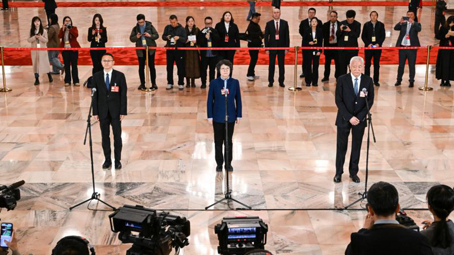 全国政协十四届四次会议第二场“委员通道”集体采访活动举行