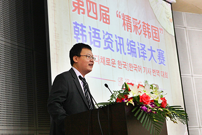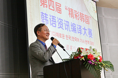颁奖仪式上,韩国驻华公使朴俊勇、环球网副总经理石丁、春芝堂董事长王爱兴、大连外国语大学校长刘宏等出席。朴俊勇在致辞中说:“精彩韩国大赛今年已是第四届,四年来,大赛一直为韩中关系发展做出贡献。1992年韩中建交后,韩中关系在各领域取得了突飞猛进的发展,而编译比赛的参赛同学也为两国关系做出了贡献。”