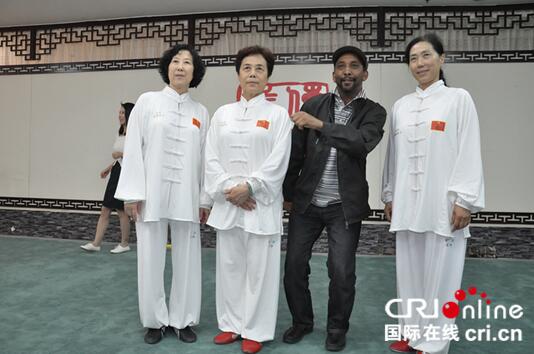 当天下午,CRI中外记者团来到群英会武术文化馆,由沧州群英武术文化传播有限公司的几位武术大师为大家带来八卦掌、拦手拳、燕青拳、八极拳以及通臂拳武术表演。据沧州武术协会副会长、沧州群英武术文化传播有限公司董事长田秀峰介绍说,这些表演的老师虽然平均年龄在六十多岁,但他们依旧宝刀不老,想要把沧州武术传承下去,他们培养出的学生多次获得过国际性比赛冠军。 来自肯尼亚的外籍记者尼拉说:“虽然我看过武术表演,但是今天的表演还是让我感到非常惊讶,这里的武术老师们年龄都那么大了,还能表演的那么好。我以前从来没见过女士能在这个年纪还能如此健康灵活。”