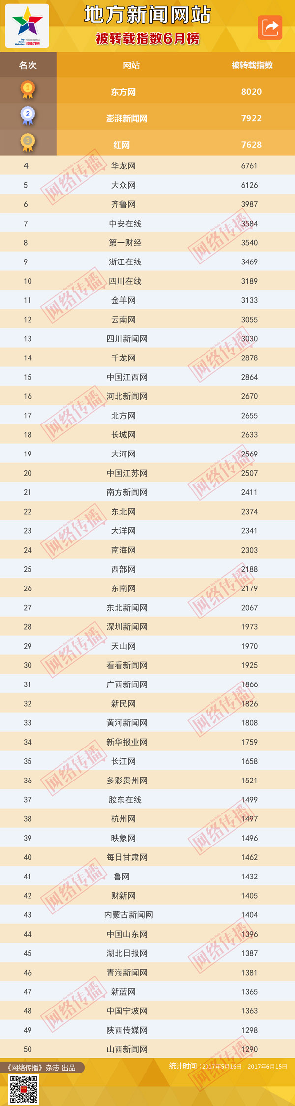 中国新闻网站被转载指数2017年6月榜发布