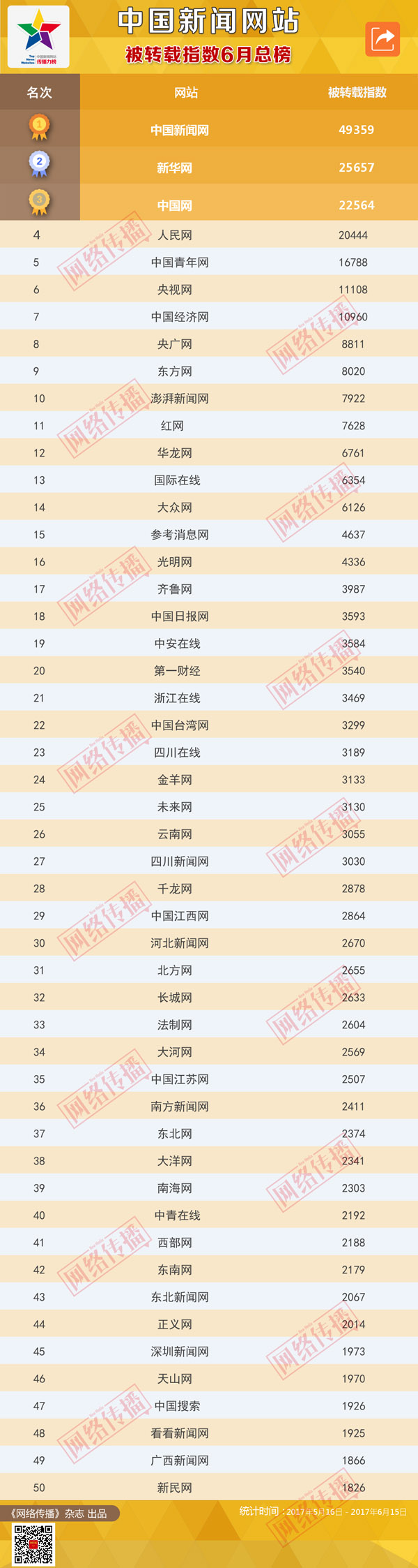 中国新闻网站被转载指数2017年6月榜发布