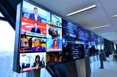 CGTN融媒中心秉承“多形式采集、同平台共享、多渠道、多终端分发”的运行思路,实现了资源共享最大化,不仅可实时共享中央电视台所有电视和新媒体新闻资源,而且还汇聚了全球两万五千多家网络媒体和七十家权威媒体机构的资讯。全新搭建的空间平台、技术平台、管理平台有效保障了电视端与新媒体端的无缝衔接、同频共振。