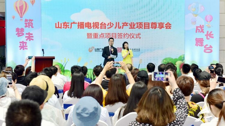 齐鲁网济南5月29日讯5月29日,以“成长舞台 筑梦未来”为主题,“山东广电少儿产业项目尊享会暨重点项目签约仪式”在山东广播电视台一楼大厅举办。