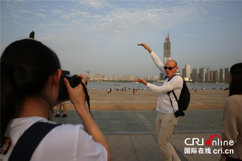 法国大V雅安是知名旅游网站escaledenuit.com的创始人。汉口江滩美丽的景色让他流连忘返,雅安说:“这是我第二次来到武汉,武汉的变化太大了,我很开心能参加这个活动,它圆了我的长江梦。”