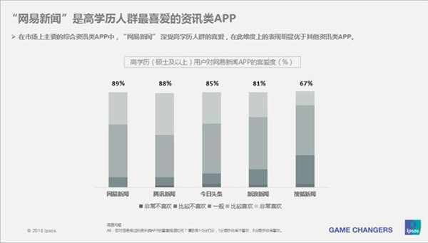 网易新闻联合知名市场调研机构Ipsos共同发布了一份网易新闻世界杯球迷大数据。数据显示,世界杯期间,网易新闻相关资讯阅读量超过15亿,网友跟贴达到3818万条。在主要的综合资讯类APP中,网易新闻用户的高知化程度最高。在世界杯的资讯获取方面,超3成球迷在无提示的情况下,会首先想到网易新闻,“专业”“内容丰富”“界面美观”是用户的主要认知。