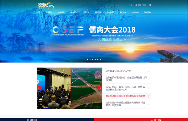 该平台入口实现了PC端、WAP端、微信服务号三端联通,而且中、英文版本同时上线,同步提供宣传、展示、应用、服务等功能。其中,PC端主要用于全面汇集各类数据信息,展示山东招商引资、招才引智热潮涌动形势,WAP端适配便于手机用户的良好体验,微信服务号则注重手机应用。