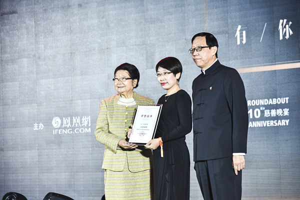 今年是中华儿慈会众爱专项基金成立十周年,他们所帮助过的孩子在慈善晚宴表演《感恩的心》,表达他们对世界的爱。众爱专项基金创始人Leslie Simpson也在现场分享了十年来关于众爱的故事,并为许多一直支持众爱的企业颁发爱心企业证书。