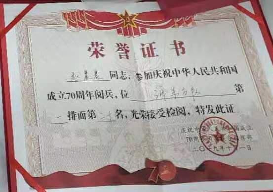据了解,今年21岁的赵晨晨家住京九办事处申寨社区阳光绿苑小区,目前在海军青岛某部队服役。10月1日上午一大早,赵晨晨家人就守候在电视机前等待观看阅兵式,当赵晨晨所在的方阵亮相后,家里一片沸腾。