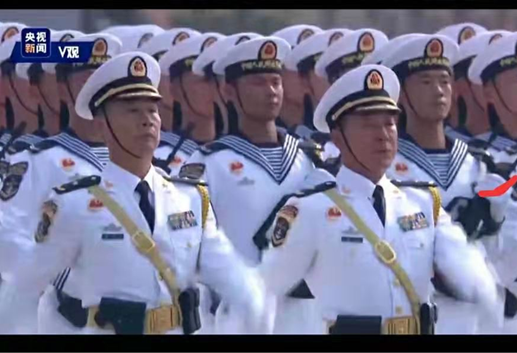 当天,阜阳市经济开发区京九办事处申寨社区的赵晨晨作为海军方队的队员受阅,并且站在第一排重要位置。