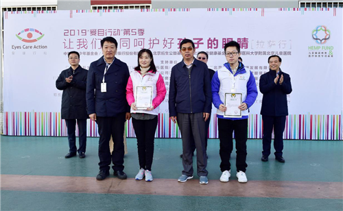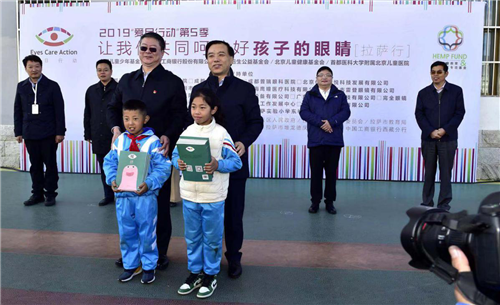 活动仪式上,爱目行动项目负责人、北京后生公益基金会理事长赖崎向为拉萨儿童捐助了9000副近视眼镜的广州苏明达光学有限公司和深圳市万新眼镜有限公司的代表颁发捐助证书,向北京优品三悦科技发展有限公司等为活动提供支持的企业颁发企业服务证书。中国工行西藏分行党委书记、行长毕晓宏,工行网络金融部副总经理张立军向拉萨儿童捐赠儿童爱眼护眼读本。北京儿童健康基金会理事、专项基金代表闻风先生、西藏自治区机关党委常务副书记杜金锁向志愿者代表颁发志愿者证书。