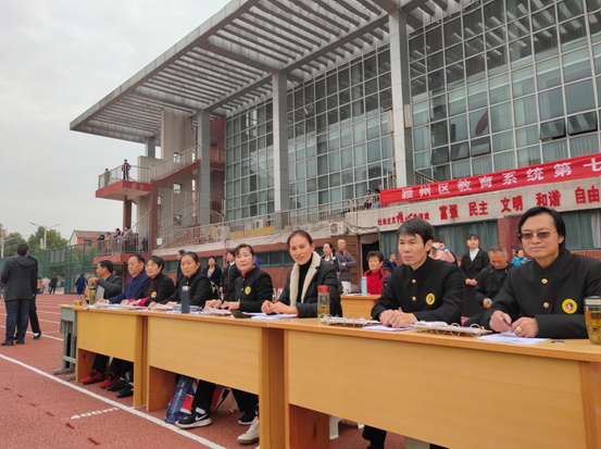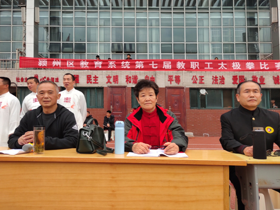 神韵太极,记忆颍州;因太极,更颍州。11月23日,由安徽省阜阳市颍州区教育局主办、阜阳市红旗中学承办的颍州区教育系统第七届教职工太极拳比赛在红旗中学拉开序幕。阜阳市颍州区委常委、副区长刘春生、阜阳市教育局调研员杜明、颍州区教育局党组书记、局长白莽、阜阳市教育局体卫艺科科长张磊、阜阳市太极拳协会会长、本次比赛总裁判长尚桂珍、颍州区教育局党组成员梁陆红、颍州区教育局党组成员赵彪、颍州区教育局党组成员陈荒龙、颍州区教育局党组成员刘伟、阜阳市红旗中学党委书记朱建东等领导和嘉宾参加开幕式、颍州区教育局党组成员卢大荣主持开幕式。