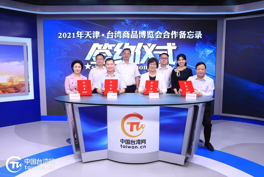 最后,在与会各方见证下,天津市台办、天津市商务局、全国台企联及中国台湾网相关负责人,共同签署《2021天津·台湾商品博览会合作备忘录》。