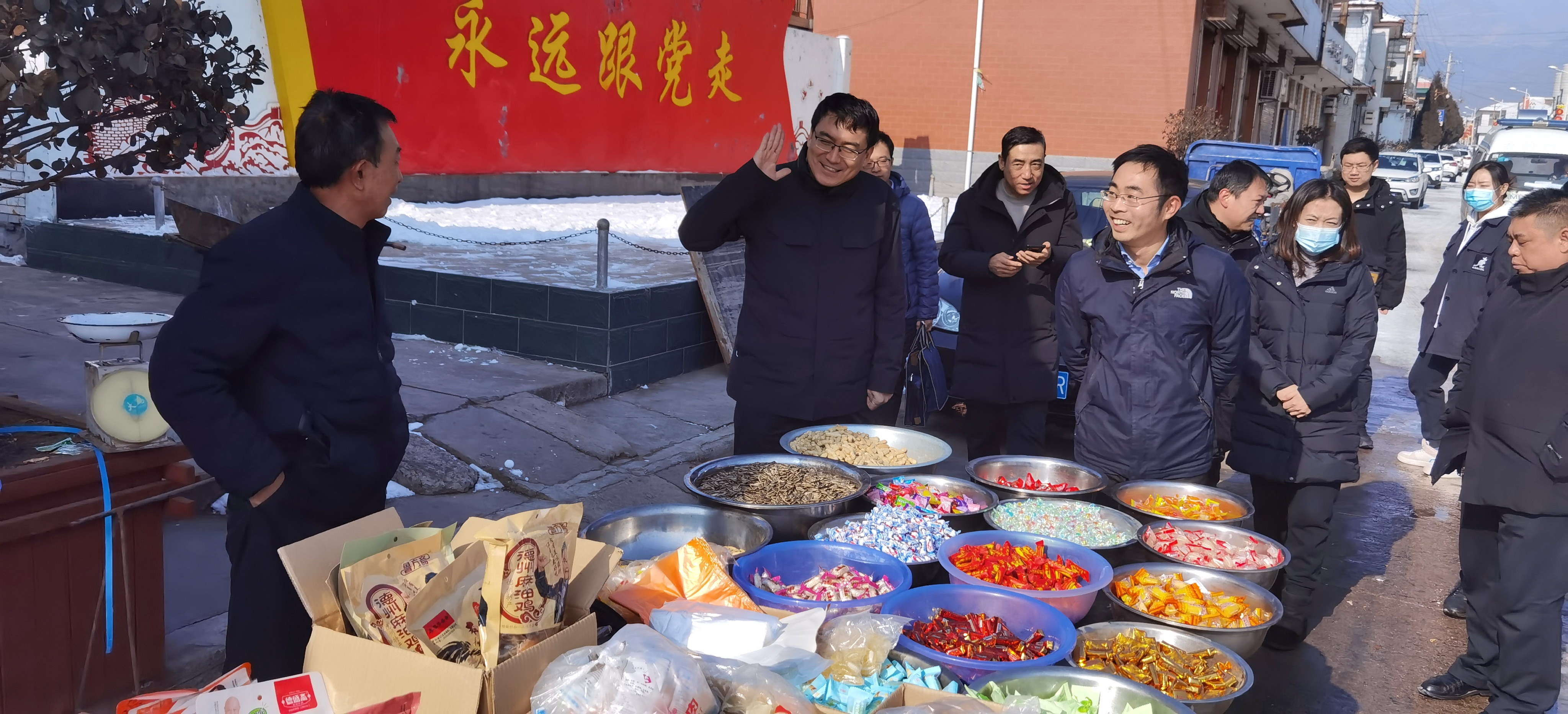 回政府。路上碰到上武村的低收入户老李一家正在置办年货,我立即打招呼并在“永远跟党走”壁画和喜庆的红灯笼前,给他们一家四口认真合影留念,并嘱咐老大抓紧学文化,正在上初中的老二盯紧点,我节后要检查“作业”,不然就不能安排去北京打工。回到政府,抓紧处理今天工作和上报的年终总结、民主生活会对照检查材料,尔后参加节前安全工作会议,最后刚出门准备去“鲁艺”志愿者小赵家吃饺子“过小年”并顺便谈谈相关工作推进情况时,碰到下来检查小镇建设推进情况的县委石书记,握手寒暄后陪同走访了两户村民,尔后告辞直奔小赵家——答应了老乡的事情就要办到,哪怕吃饭——其实吃饭可以说是最重要的事情,“乡村振兴”哪里能饿着肚皮搞呢?而且在基层和村民“吃饭”是最可能沟通感情、提高办事效率的“捷径”。当然,我也带了“吃的”,不能占人便宜,这样才能更好共庆小年,共祝新年。