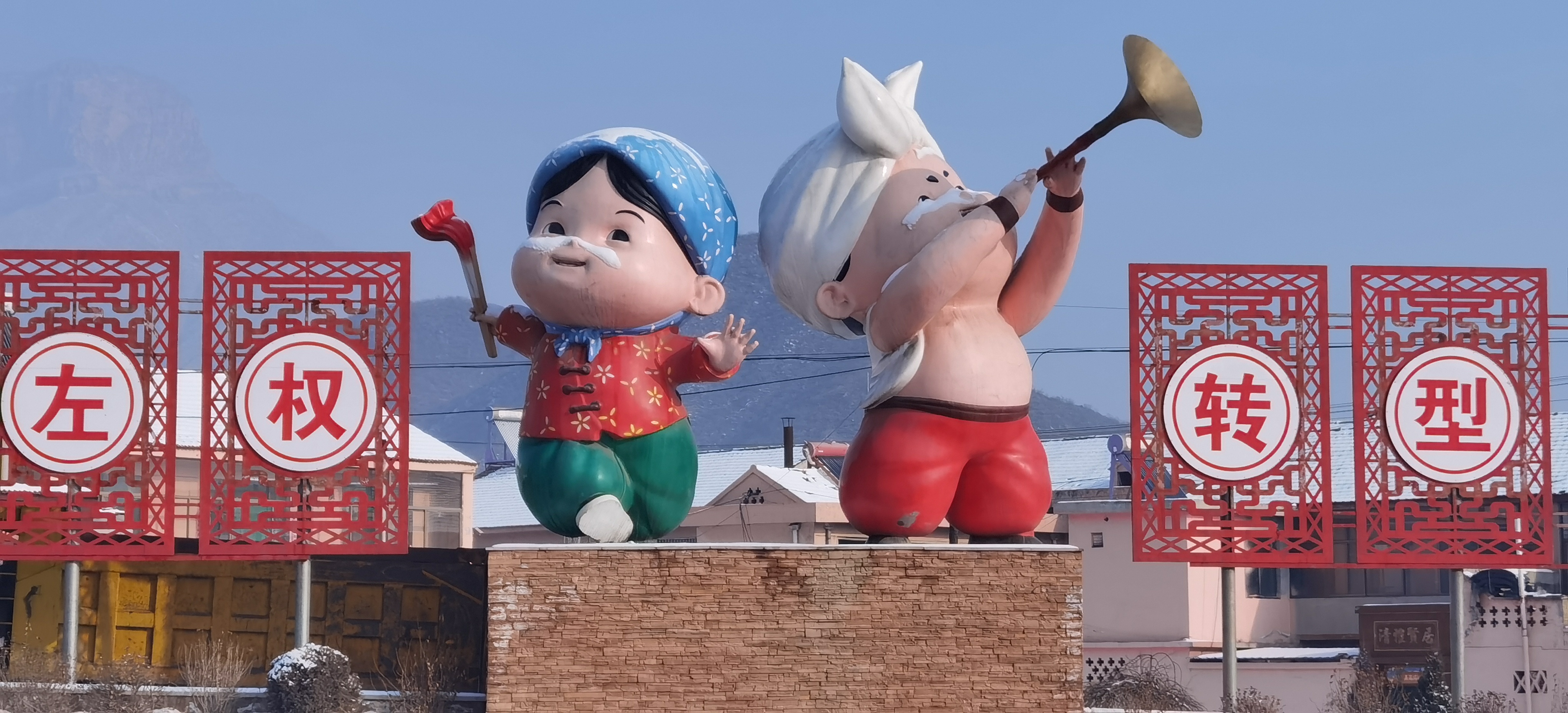 早饭后距上班还有一段时间,想去附近不远的地方看看雪中的毛公山——中国的“毛公山”不少,但左权桐峪毛公山却极可能是最神似的一座:天地之间,酷似伟人的山峦静静仰卧一方,令人不免联想到“没有自己特殊利益”的共产党培养锻造了以毛泽东等同志为代表的大批共产党人和坚强的人民军队,团结了一切可以团结的力量,扫除了一切前进路上的障碍,开天辟地写成了“不仅善于打破一个旧世界,更善于建设一个新世界”的波澜壮阔的百年奋斗史……桐峪本来就是一个红色资源极为丰富的小镇,没想到这里的自然风光竟如此奇绝、与“红色历史”如此“相合”,令人赞叹不已。走出政府办公区,我在这个太行小镇唯一的大街上,踏着吱吱咯咯的白雪,向北而行。