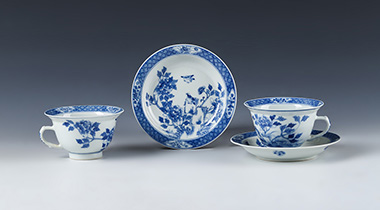 A Set of Cup and Saucer with Design of Flowers and Birds in Blue and White in Guangxu Reign of Qing Dynasty (1875-1908)