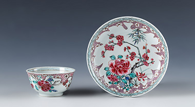 A Cup and Saucer with Floral Design in Famille-rose in Yongzheng Reign of Qing Dynasty (1722-1735)