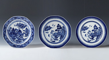 Introduction: These three blue and white plates are decorated with landscape designs in the Qianlong period. Each of the designs is different (two slightly so) but all are in the same style. The designs are composed of houses, buildings, gatehouses, pavilions, towers, bridges, willow trees, lakes and wild geese. The blue and white porcelain has brilliant color and lustrous glaze, which makes the pieces stand out from those with similar themes from the same period. It embodies the beauty of Chinese gardens and reflects the admiration for Eastern culture within the upper classes of the West in the 18th century. The three plates are examples of the integration of traditional Chinese design with the lifestyles and aesthetic tastes of European aristocrats at that time, which occurred through the integration of Chinese and Western cultures through the Maritime Silk Route. This style was known in Europe as Nanking Pattern porcelain, and later as Willow Pattern porcelain. In Europe, this decorative pattern was copied by the German-produced Meissen porcelain, with the style remaining in production until now. In China, from the late Qing Dynasty to the Republic of China period, and even after the founding of the People’s Republic of China, porcelain featuring this style of decoration has been produced on a massive scale by the People’s Porcelain Factory in Jingdezhen. It is a classic design based on the integration of Eastern and Western aesthetics that was popular in the world for more than 200 years
