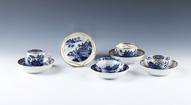 Introduction: These cups and saucers are outstanding among porcelain of the same kind made during the Qianlong period. The rims of the interior walls have patterned bands. The exquisite paintings in blue on the white background present the landscape and architecture of ancient China, which mainly includes houses, pavilions, pagodas, bridges, willows, lakes, and wild geese. These items exhibit the tranquil style of East Asian pavilions beside mountains and rivers, which were favored by the upper classes in the West in the 18th century. During this period, designs such as these exerted the greatest influence on the world’s porcelain production, were most popular in Europe and were produced in the greatest volume. Porcelain of this style was known as Nanking Pattern porcelain in Europe and later as Willow Pattern porcelain. In Europe, the pattern was imitated on Meissen porcelain produced in Germany, which was Europe’s first hard-paste porcelain. In China, this style of porcelain developed throughout the late Qing Dynasty and the Republic of China period, and was still produced on a large scale by Jingdezhen People’s Porcelain Factory after the founding of the People’s Republic of China in 1949. It is a classic design based on the integration of Eastern and Western aesthetics that was popular in the world for more than 200 years.