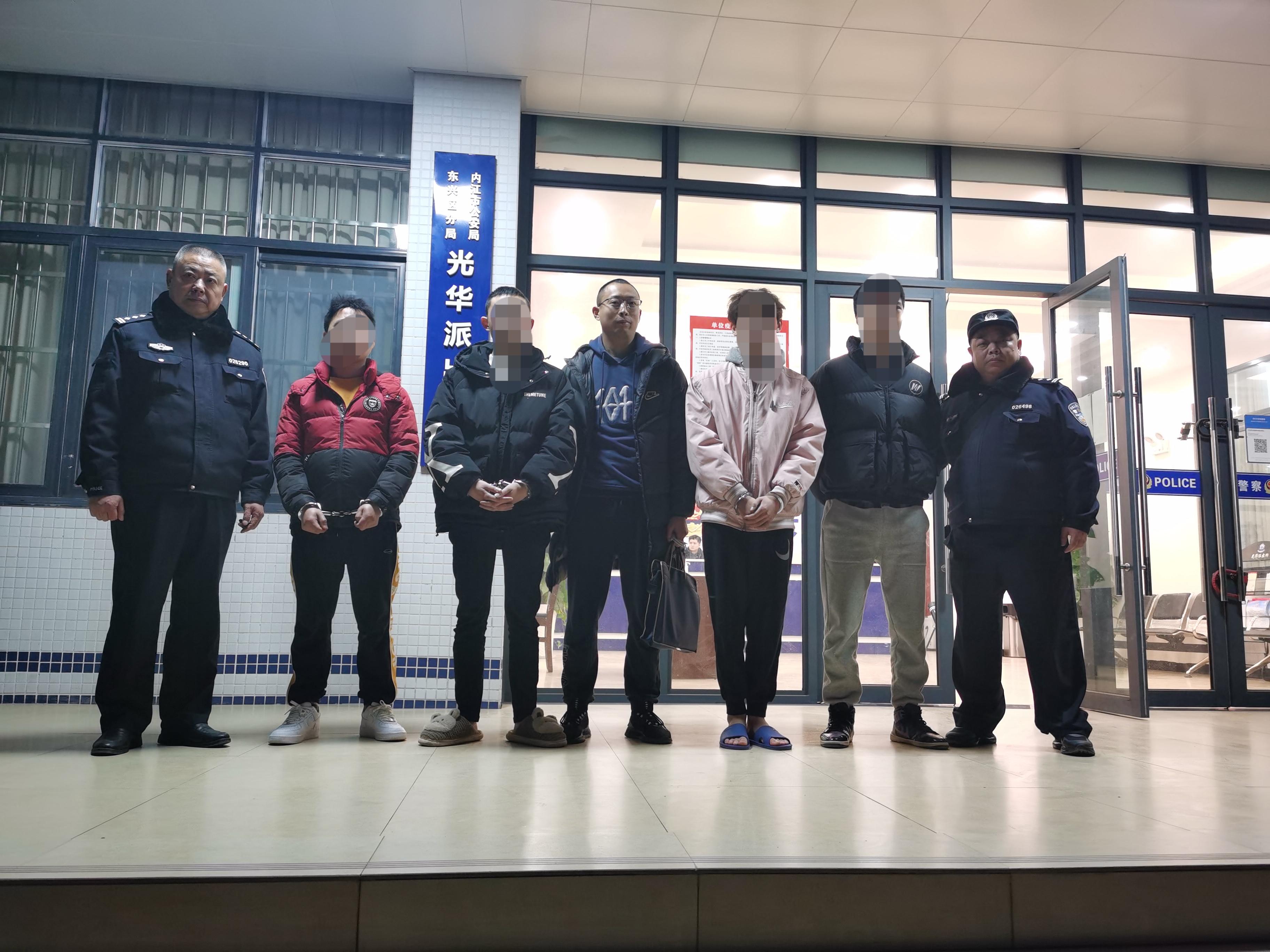 今年2月9日19时许,德阳市公安局经开区分局龙泉山路派出所民警根据上级公安机关反馈的线索,在对辖区某大酒店检查中发现该酒店的两个房间内摆放着2套GOIP设备,该设备系虚拟拨号设备,用于伪造电话号码进行远程遥控拨打诈骗电话,并在现场抓获4名犯罪嫌疑人,遂将其带回派出所作进一步调查。很快,根据4名嫌疑人的交待,办案民警又成功挖出涉案的另外4名嫌疑人,办案民警又马不停蹄赶往内江、资中等地,将涉案的嫌疑人全部抓获。