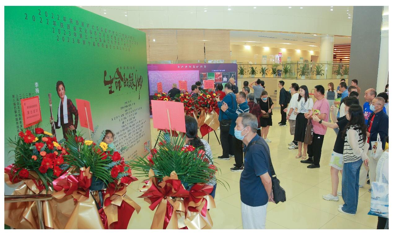 为推动农文旅协同发展,赋能乡村振兴,以文艺形式唱响陕北农村振兴新篇章,此次“秦腔走进大湾区”巡演活动中,还特别组织开展榆林农贸特色产品的展示展销活动。剧院大厅,画廊一样,展出了一批陕西省榆林市书画家创作的反映家乡巨变的书画作品,更有陕西省戏曲研究院定点帮扶村——榆林市绥德县崔家湾镇贺家湾村沙地红薯等各种优质农产品琳琅满目,呈现了榆林市防沙治沙生态文明建设的丰硕成果,受到深圳观众热烈欢迎。(杨剑力)