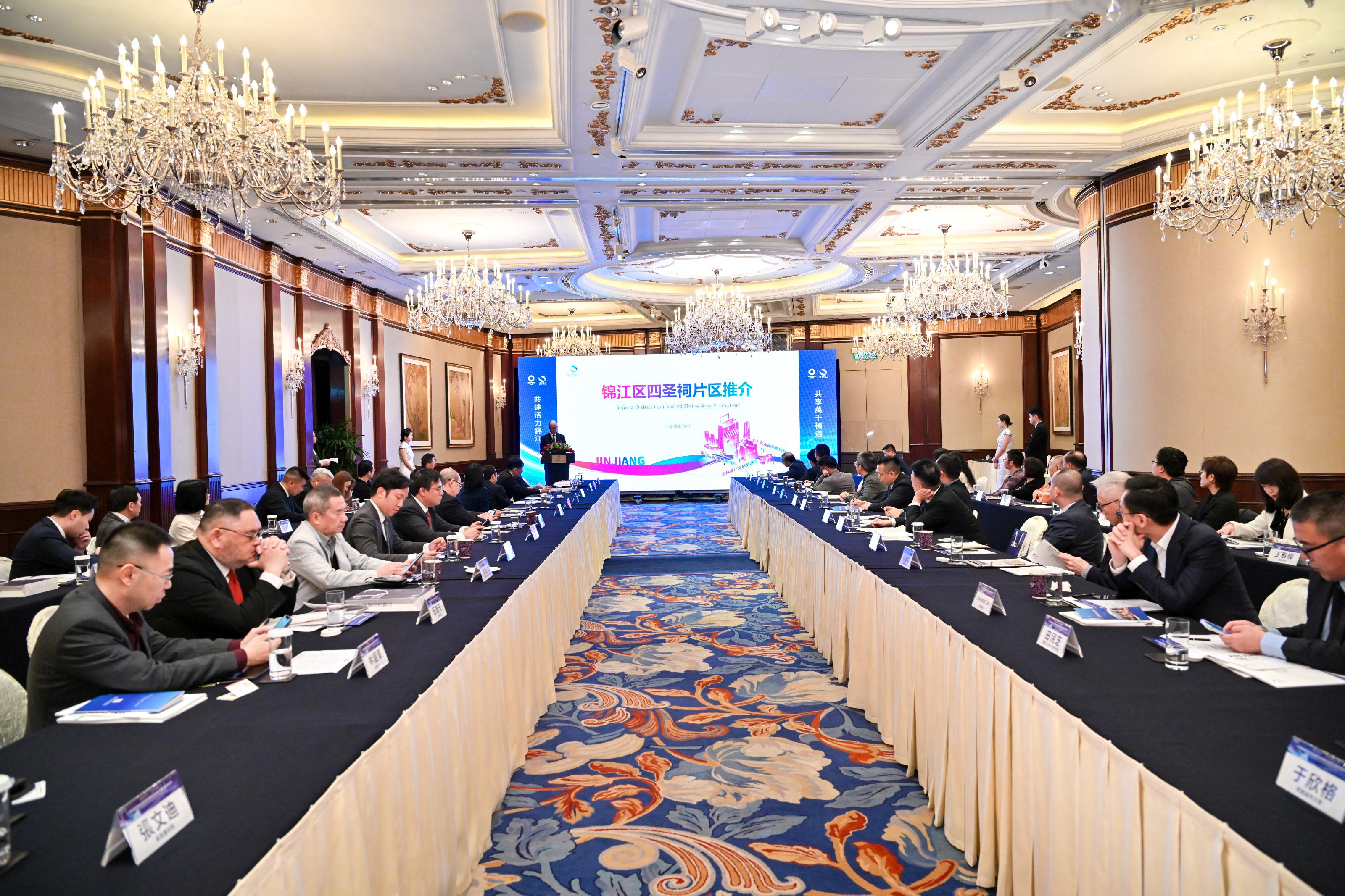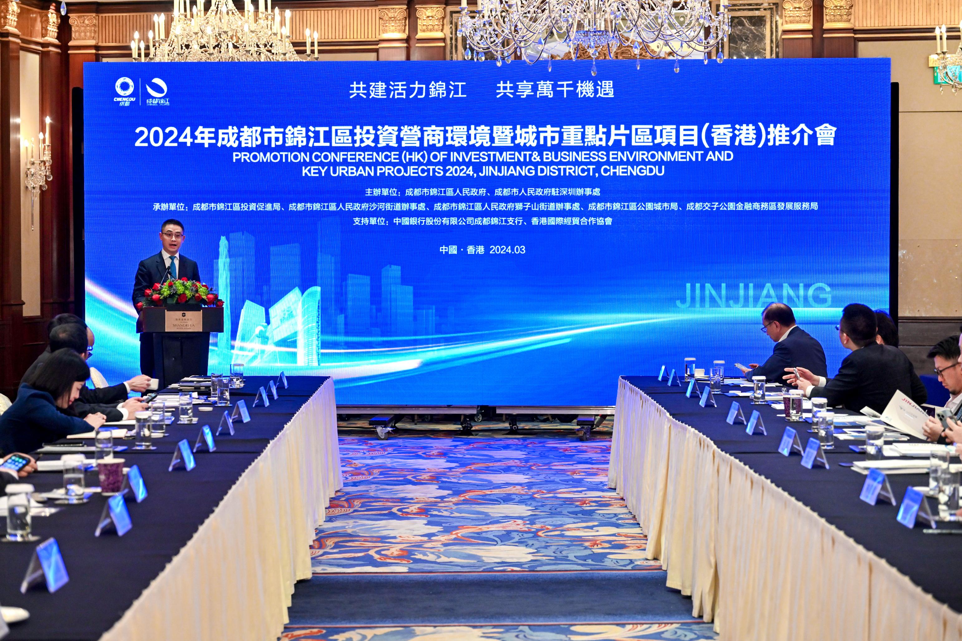 3月7日下午,由成都市投资促进局、中国银行股份有限公司成都锦江支行、香港国际经贸合作协会支持,成都市锦江区人民政府、成都市人民政府驻深圳办事处联合主办,成都市锦江区投资促进局、成都市锦江区沙河街道办事处、成都市锦江区狮子山街道办事处、成都市锦江区公园城市局、成都市交子公园金融商务区发展服务局共同承办的“2024年成都市锦江区投资营商环境暨城市重点片区项目(香港)推介会”在香港港岛香格里拉酒店举行。来自香港房地产业、商贸业、文旅业、金融业及商协会等领域的40余名重点企业(商协会)代表相聚港岛,共享机遇、共话发展、共谋未来。