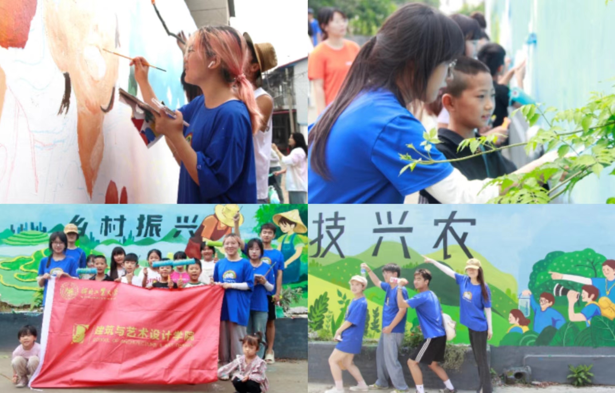 实践队将课程思政实践与专业实践有机融合,让青春梦想与祖国发展同频共振。团队中创意设计系的学子在切实考察当地特色文化的基础上,充分发挥专业优势,挖掘当地文化,绘出以“乡村振兴,科技兴农”为主题的24米艺术长卷,助力鲁家峪美丽乡村建设。行走在知识的田野上,他们既播种美的种子,以艺术滋养心灵;又深耕实践的沃土,让理论在实践中开花结果。实践队以时代发展需求为导向,以专业赋能,以文化人、以美育人,共筑学生全面发展之基,致力培养既有审美情趣又具实干精神的新时代青年。