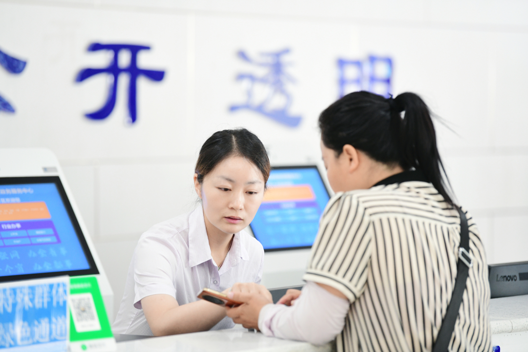 水城区政务服务中心工作人员为群众提供优质政务服务。