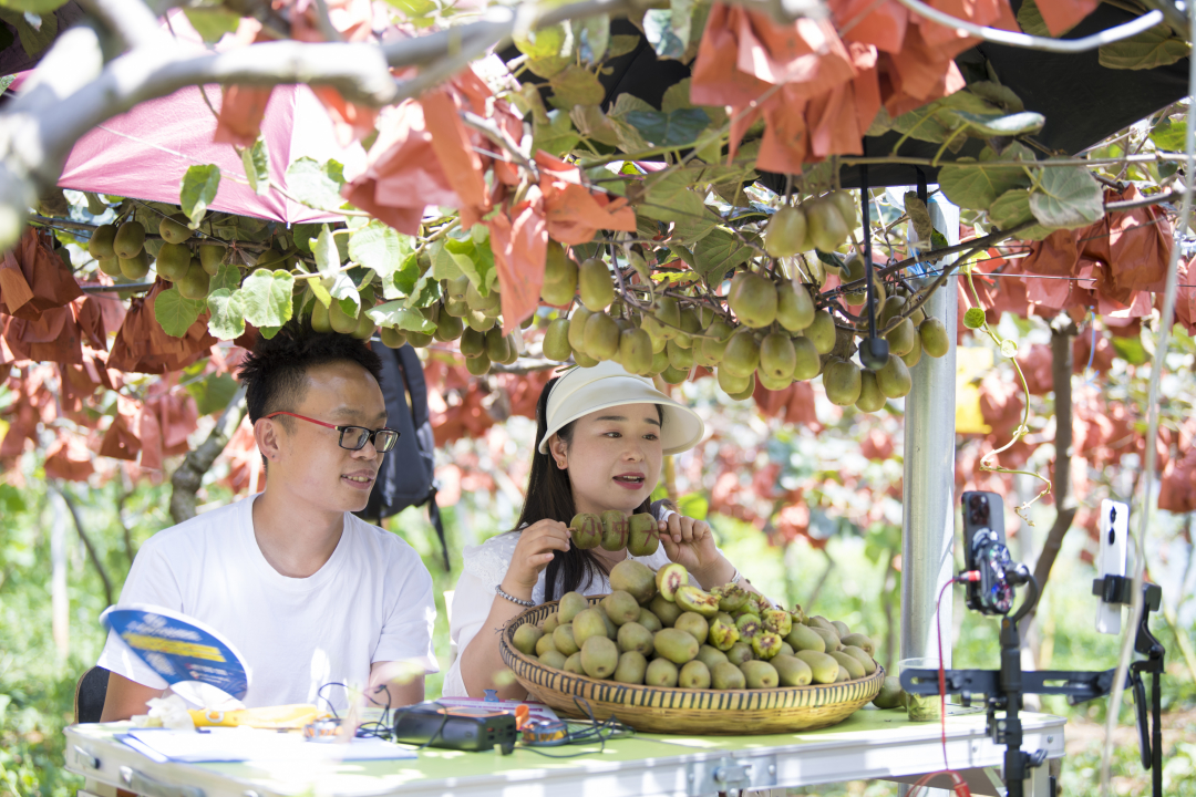 农民主播推广猕猴桃。