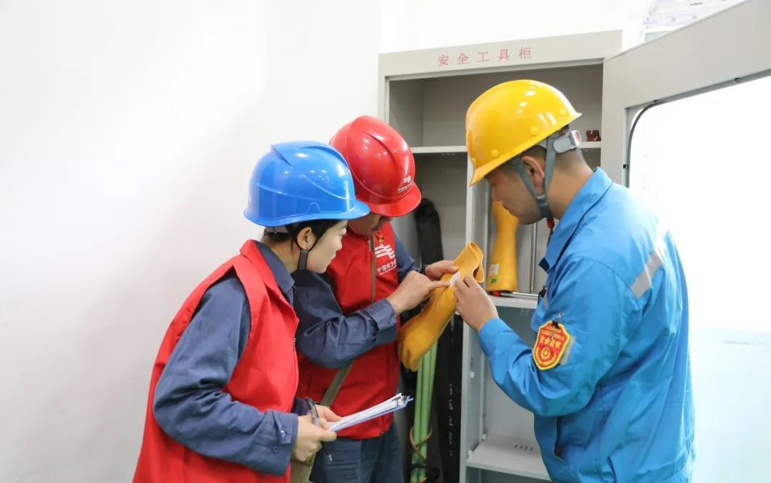 水城供电局工作人员查看企业用电工具。
