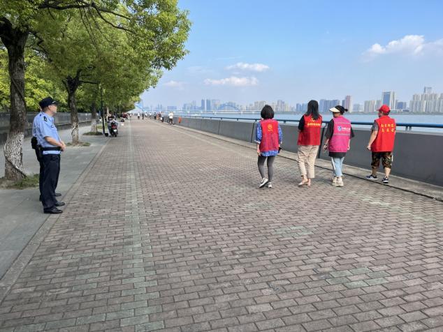 在钱塘江畔总能见到一群身着志愿者服装的人员,他们沿着江边巡逻,脚步不停。这是一项看似平凡却至关重要的工作——巡江。他们不仅要时刻留意江面动态,预防溺水事件的发生,还要查看江边步道情况,维护环境整洁,更重要的是,要在特殊时期,如台风过境或大潮来临前,做好预警和疏散准备。同时通过设立警示标志、加强监控等措施,共同构建起一道坚不可摧的安全观潮防线。