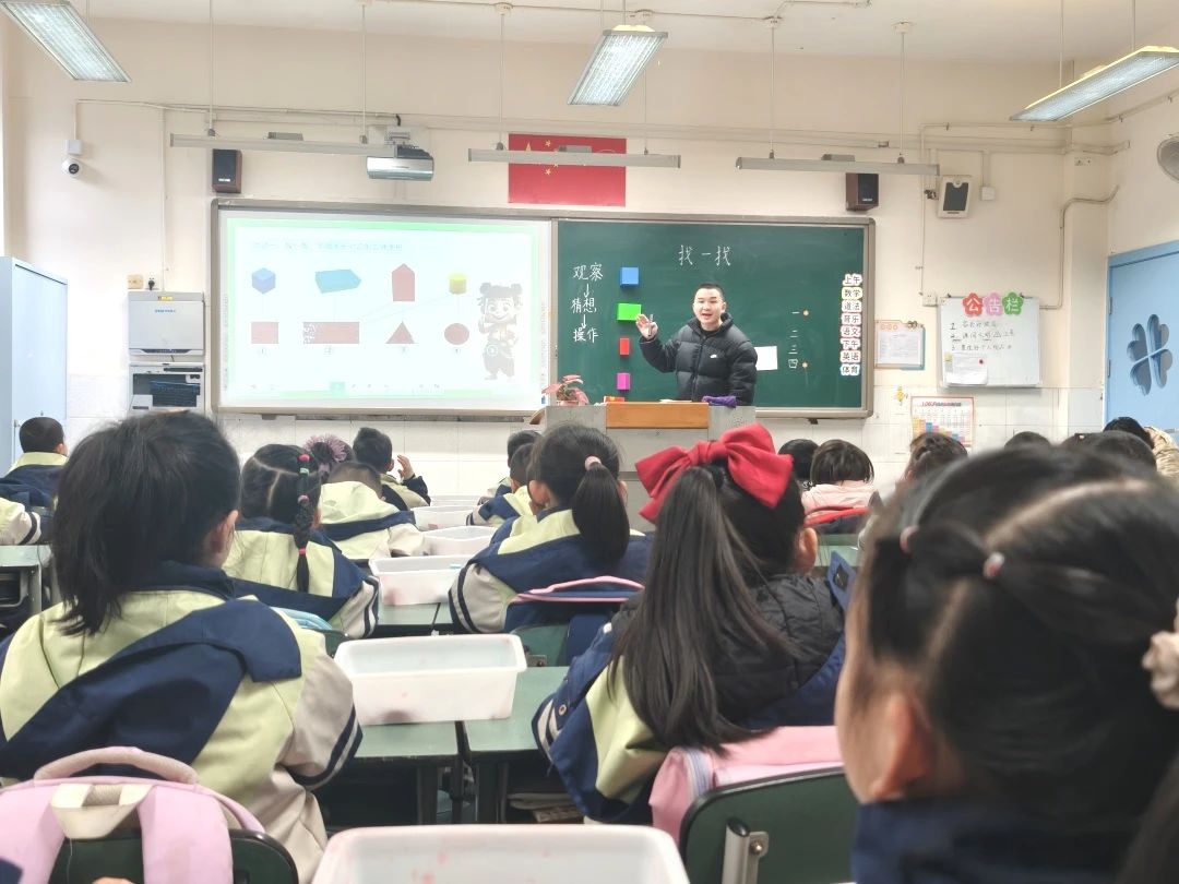活动中,徐先科老师带来了生动的课例展示《找一找》。课堂上,徐老师从单元整体规划出发,深入挖掘教材内容,通过“印一印、找一找”等操作探究活动,引导学生感知“体—面”之间的关系。这种基于真实问题的教学设计,进一步帮助学生建立了初步的空间观念,渗透了分类、比较、对应等数学思想,为学生积累了宝贵的数学活动经验。
