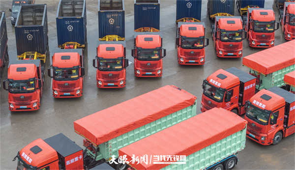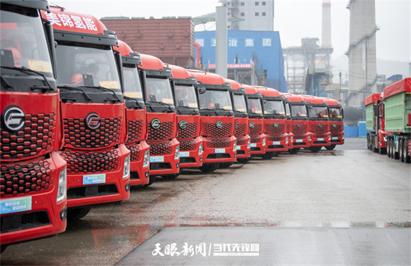 5月10日,100辆49吨级氢能重卡在六盘水市六枝特区正式投运。贵州日报天眼新闻记者 尚宇杰 摄