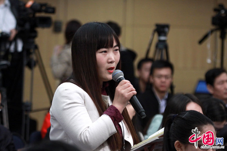 3月7日,农业部部长韩长赋就“转方式调结构 加快发展现代农业”的相关问题回答中外记者的提问。中国网记者提问。中国网 郭天虎摄影