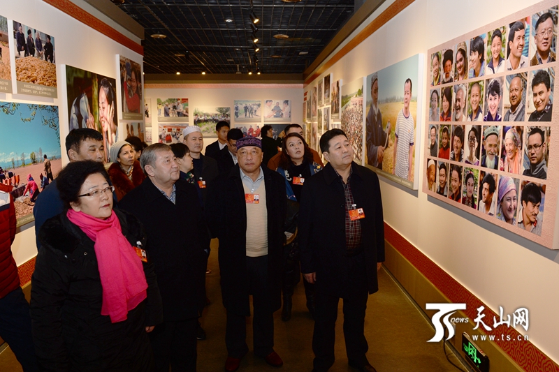 1月15日,自治区博物馆,出席自治区十二届人大四次会议的人大代表参观《春风化雨润心田》第二批“访惠聚”活动摄影图片展。