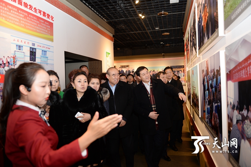 1月15日,自治区博物馆,出席自治区十二届人大四次会议的人大代表参观《春风化雨润心田》第二批“访惠聚”活动摄影图片展。