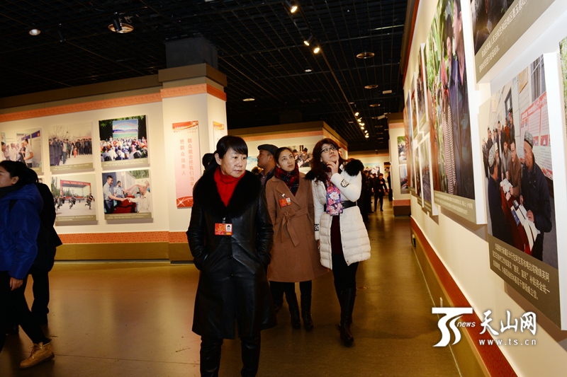 1月15日,自治区博物馆,出席自治区十二届人大四次会议的人大代表参观《春风化雨润心田》第二批“访惠聚”活动摄影图片展。