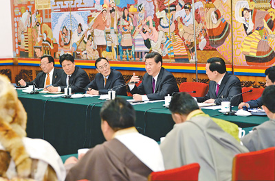 2013年3月9日,中共中央总书记、中共中央军委主席习近平参加十二届全国人大一次会议西藏代表团的审议。