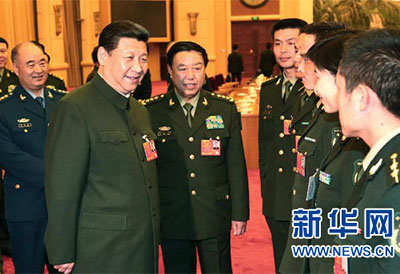 2013年3月11日,中共中央总书记、中共中央军委主席习近平出席十二届全国人大一次会议解放军代表团全体会议并发表重要讲话。