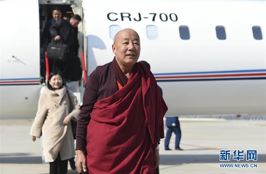 3月1日,来自甘肃的全国政协委员抵达北京,出席全国政协十二届四次会议。这是丁科仓委员走下飞机。 新华社记者 谢环驰 摄