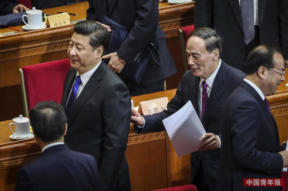 政协会议结束后王岐山追上习近平交谈