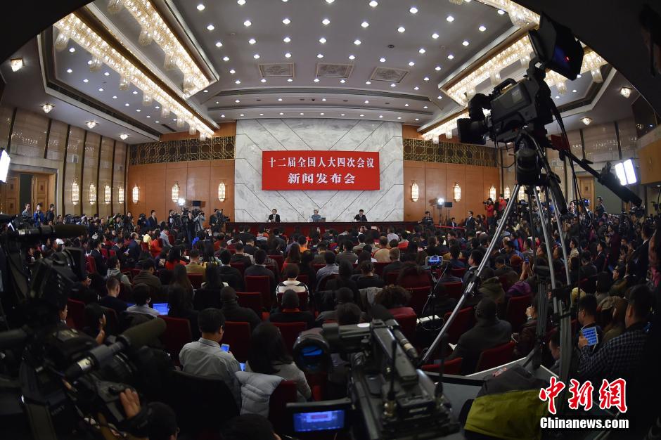 3月4日上午11时,十二届全国人大四次会议在北京人民大会堂举行新闻发布会。大会发言人傅莹将就会议议程和人大工作回答记者提问,并回应社会关注的热点问题。中新社记者 金硕 摄