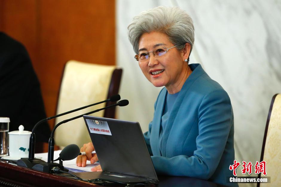 3月4日,十二届全国人大四次会议在北京人民大会堂举行新闻发布会。大会发言人傅莹就大会议程和人大工作相关问题回答中外记者的提问。中新社记者 富田 摄