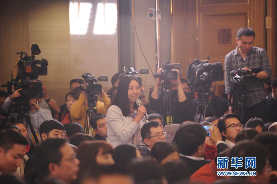 3月4日上午11时,十二届全国人大四次会议在人民大会堂举行新闻发布会,大会发言人就会议议程和人大工作相关的问题回答中外记者的提问。图为中国新闻社记者提问。新华网/中国政府网 陈杰 摄 图片来源:新华网