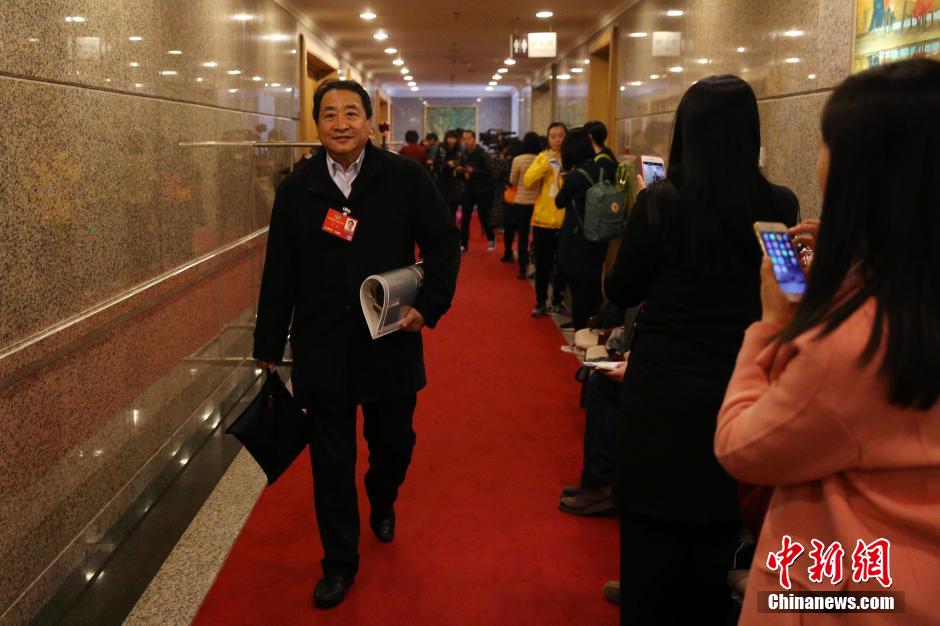 3月4日,全国政协十二届四次会议进行分组讨论。政协委员姜昆前往会场。 中新社记者 韩海丹 摄